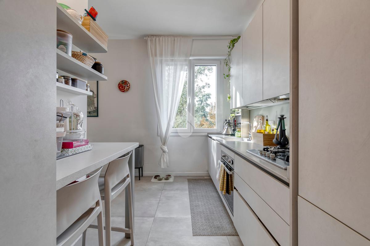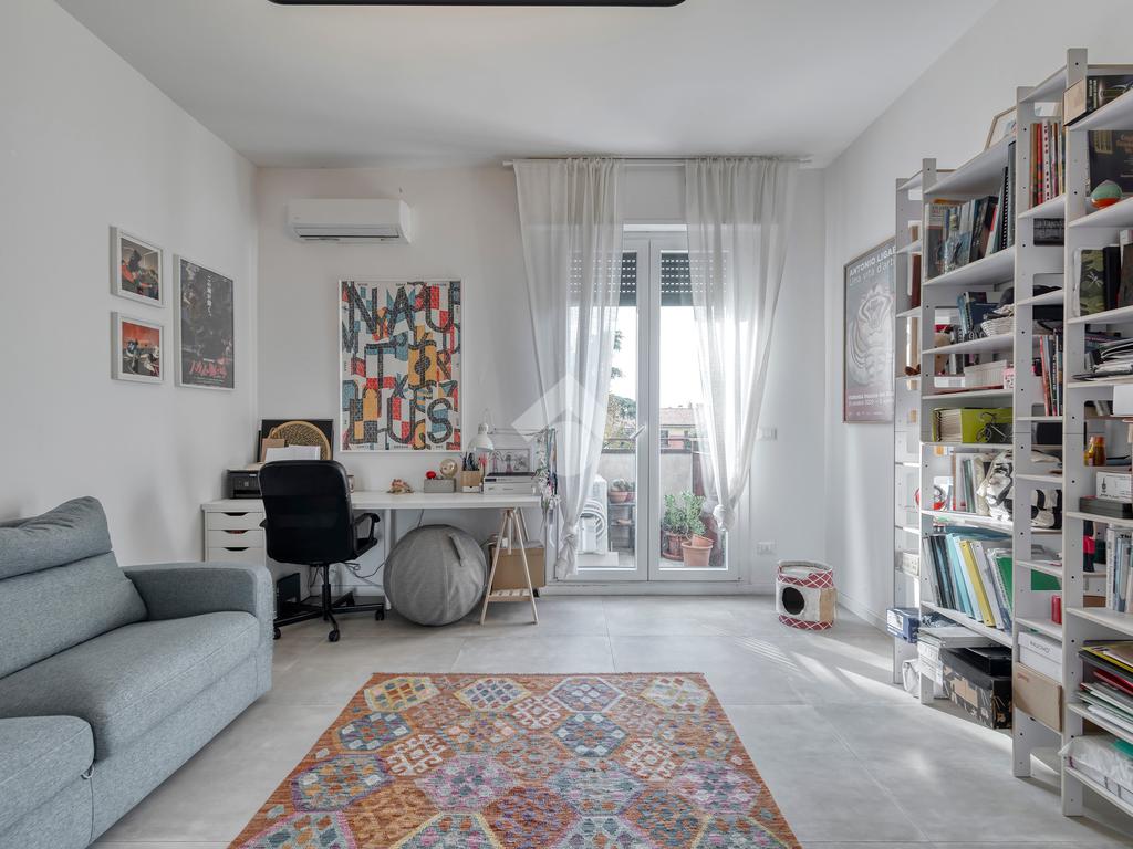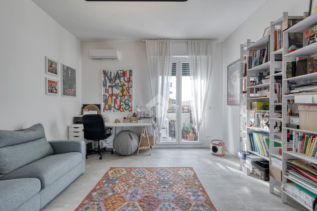 L’appartamento è stato completamente ristrutturato, con infissi in PVC a doppio vetro, impianto di aria condizionata e finiture moderne. La disposizione interna risulta molto funzionale e garantisce ottima luminosità in tutti gli ambienti.